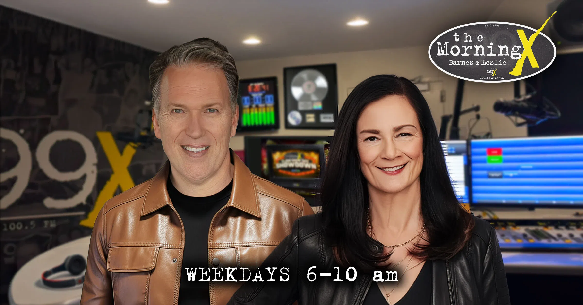 The Morning X was founded in 1994 with a 10-year run on 99X. In Jan 2023, The Morning X returned with original cast members Barnes and Leslie, shortly after The Original 99X returned in December of 2022. Jimmy Baron occasionally joins the show in a recurring role and Crash Clark has returned as of Feb 2025 with full-time traffic reports. Listen live weekdays to Classic Morning X with Barnes, Leslie and Jimmy from 6 to 7 am and all NEW Morning X shows with Barnes and Leslie from 7-10 am on 100.5 FM in Atlanta or worldwide via the 99X App. If you miss anything, you can always catch it on The Morning X with Barnes and Leslie Podcast.